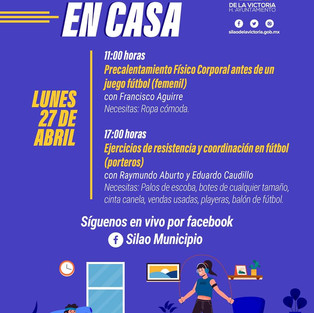 La Comisión Municipal del Deporte invita a toda la ciudadanía a participar en activaciones físicas, deportivas y recreativas que podrán realizar desde casa a través de la página de Facebook de Silao Municipio: https://web.facebook.com/SilaoMunicipio .